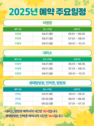 📌 TIP: 국립공원 야영장 예약은 2개월 단위로 진행되므로, 원하는 날짜가 있다면 미리 계획하고 서둘러 예약하세요! 🚀